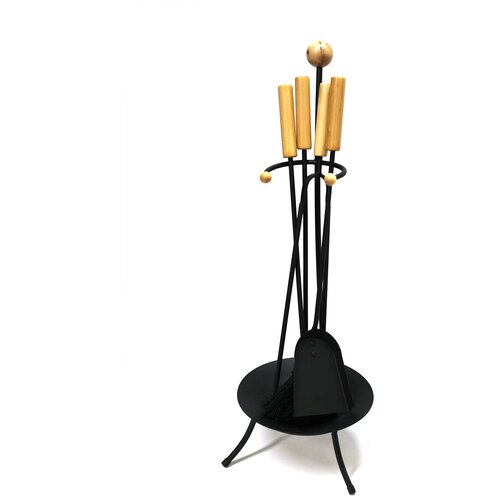 Каминный набор K007SB-B на стойке 4 предмета (щетка, кочерга, совок, подставка)