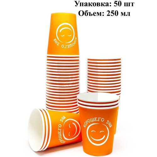 Стакан бумажный для горячих напитков/250 мл/хороший день/50 шт/для праздника