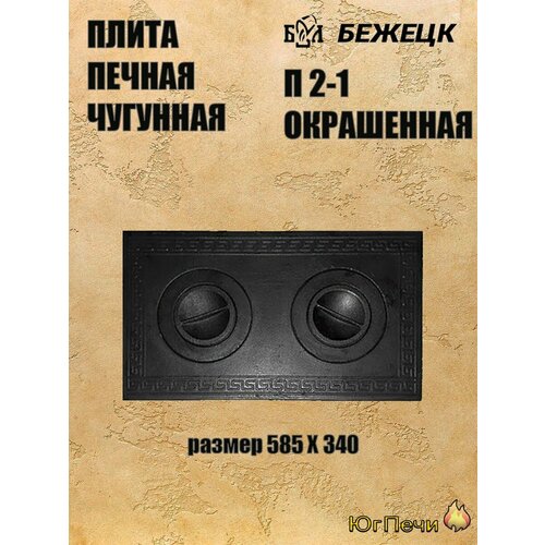 Плита печная чугунная Бежецк П2-1 585x340мм Окрашенная с 2-мя конфорками