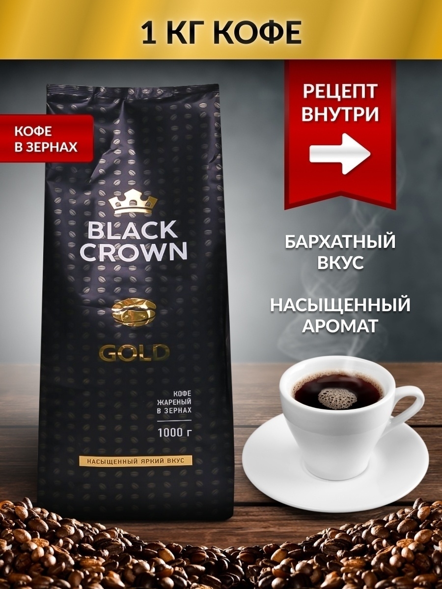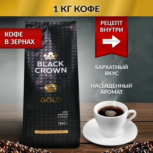 Кофе зерновой Black Crown Gold, Жареный в зернах 1кг, Бархатный, Насыщенный, 1000 грамм