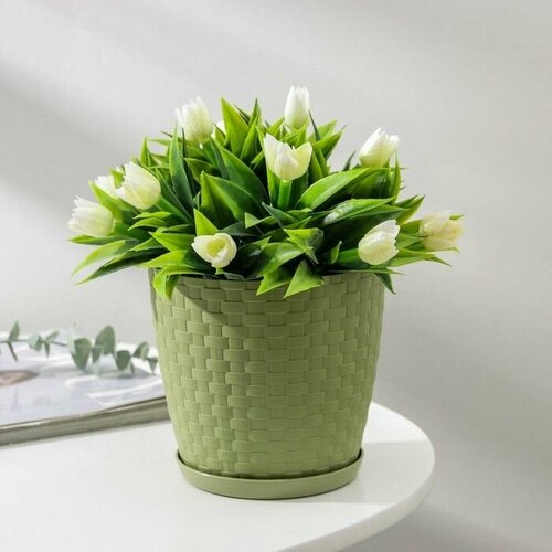 Горшок для цветов с поддоном 2 шт , кашпо 1,2 л, цветочный горшок 13 см х 13 см х 12 см, зеленый