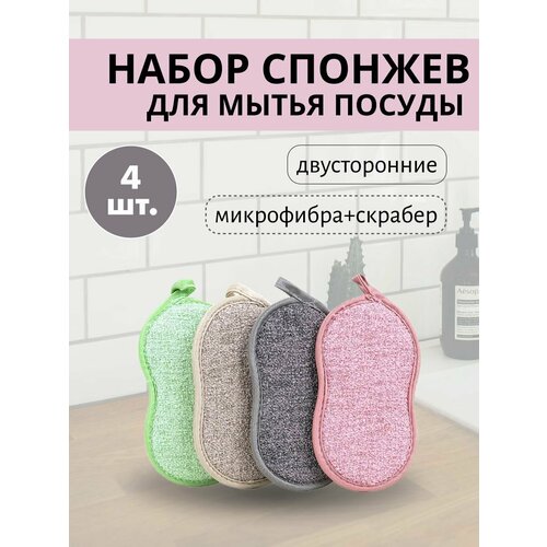 Губки для мытья посуды, набор из 4 шт.