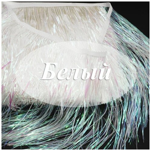 Мишура блестящая, цвет Белый, ширина 20 см длина 1 метр, бахрома для украшения танцевальных костюмов, интерьера, оформление фотозоны