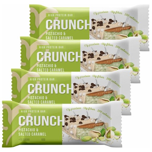 BootyBar, Протеиновый 4х-слойный батончик без сахара Crunch Bar, 4шт по 60г (Фисташка и Солёная карамель)