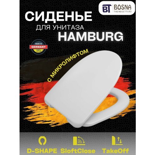 Сиденье для унитаза Bosna Hamburg с крышкой микролифт быстросъемное дюропласт белое