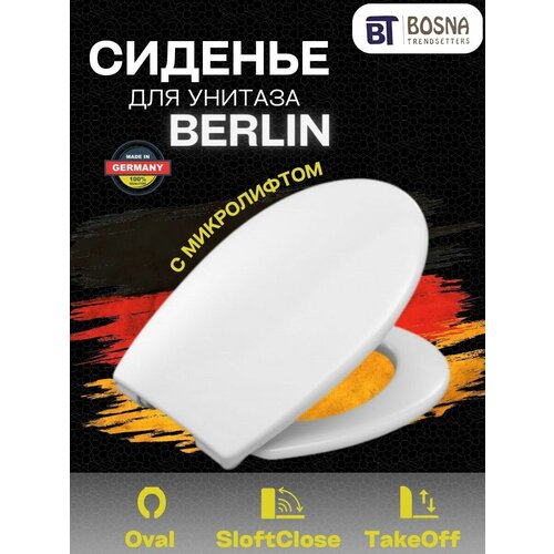 Сиденье для унитаза Bosna Berlin с крышкой микролифт быстросъемное дюропласт белое