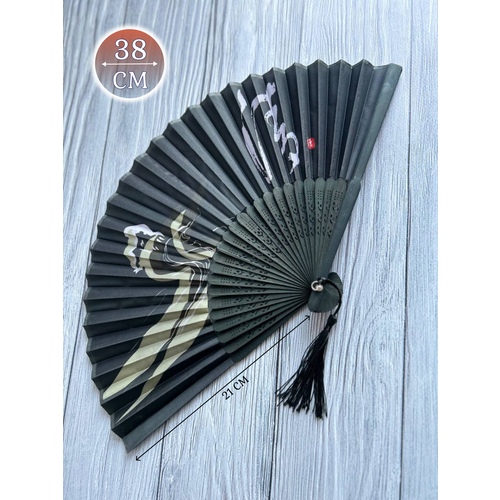 Веер деревянный складной ручной с кисточкой в чехле для фотосессии