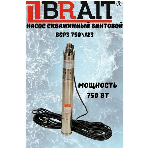Насос скважинный BRAIT BSP3 750/123 (750Вт, 2850л/час, макс. напор 123м, кабель 20м)