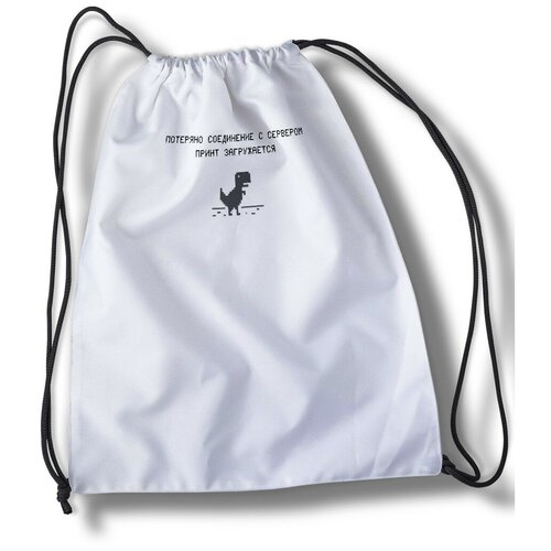 Мешок для cменной обуви надписи приколы, потеряно соединение с сервером, принт загружается, динозавр, интернет, шрифты, надписи, слова - 30725