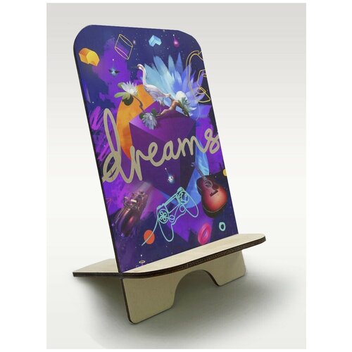 Подставка, держатель для телефона из дерева c рисунком, принтом УФ игры Грёзы (Dreams, imp, песочница, PS, Xbox, PC) - 488