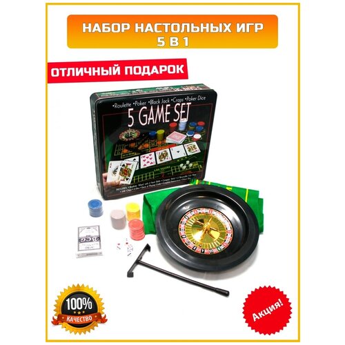 Настольная игра - 5 игр: рулетка, покер, блэк-джек, крэпс, покер на костях