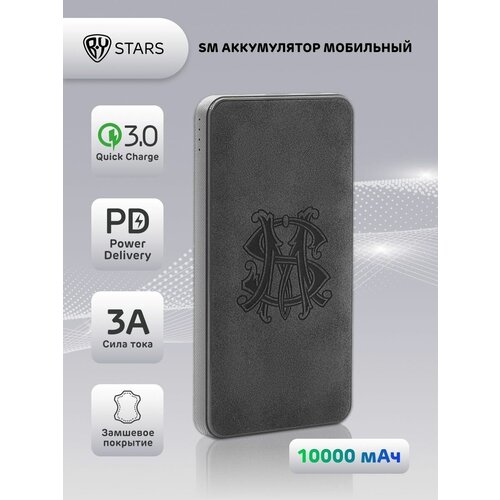 BY Аккумулятор мобильный с подсветкой, 10000мАч, 2 USB, 2A, прорезиненный корпус, пластик