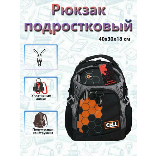 BY Рюкзак подростковый, 41x29x18см, "Селфмейд", 1 отделение, 4 кармана, блестящий ПЭ