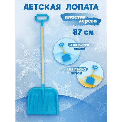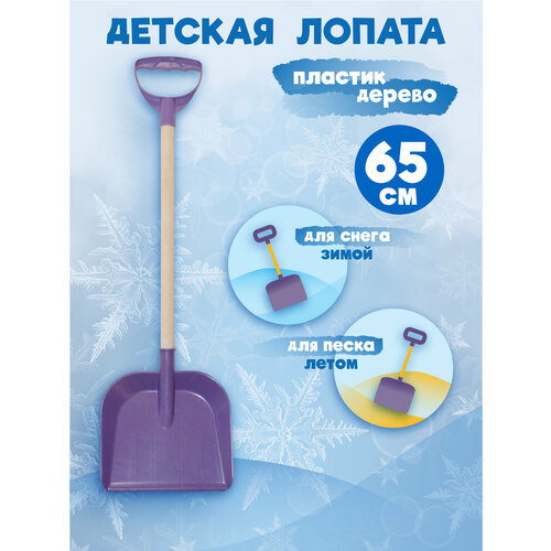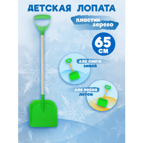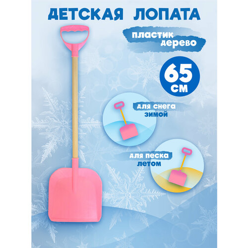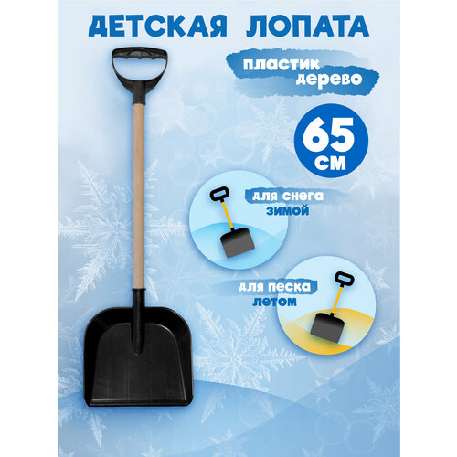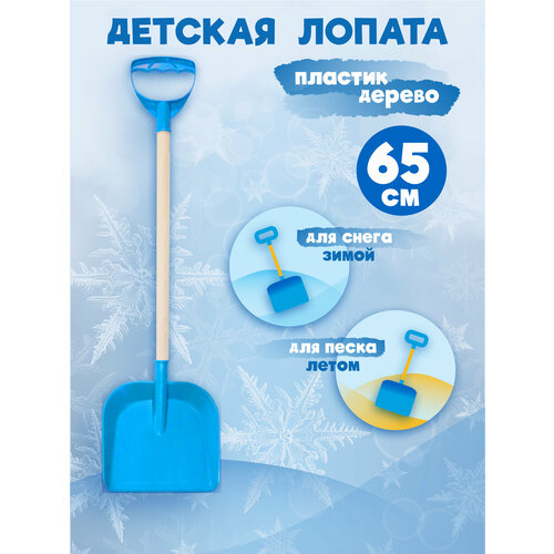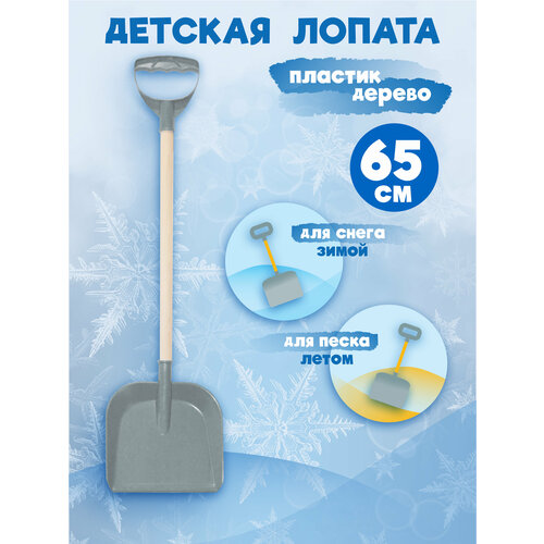 Детская лопата для снега и песка с деревянным черенком и ручкой, длина 65 см