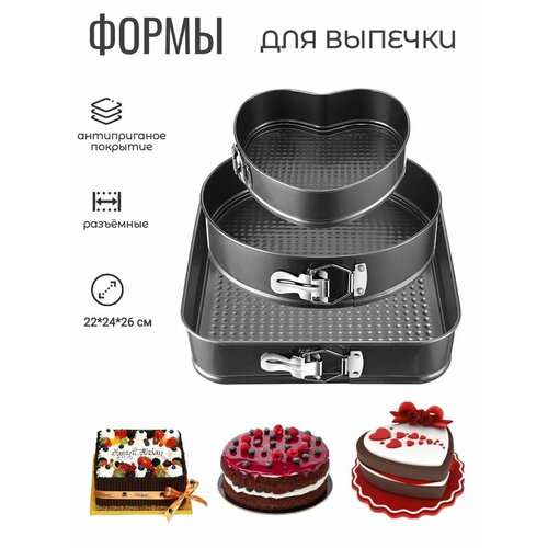 Набор из трех форм разного размера для выпекания / форма для выпечки пиццы, коржей / противень для выпекания