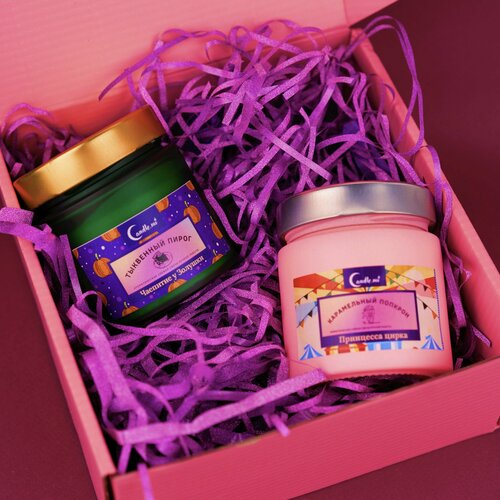 Набор ароматических свечей в подарочной упаковке "Тыквенный пирог" и "Карамельный попкорн" / 2 свечи х 200 мл