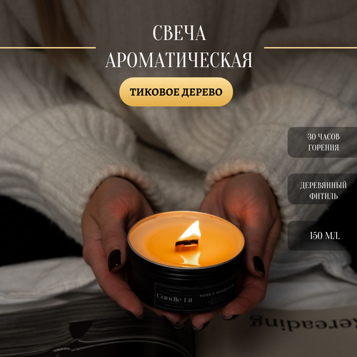 Свеча ароматическая в металлической банке, "Тиковое дерево", деревянный фитиль, 150 мл, Candle_lit