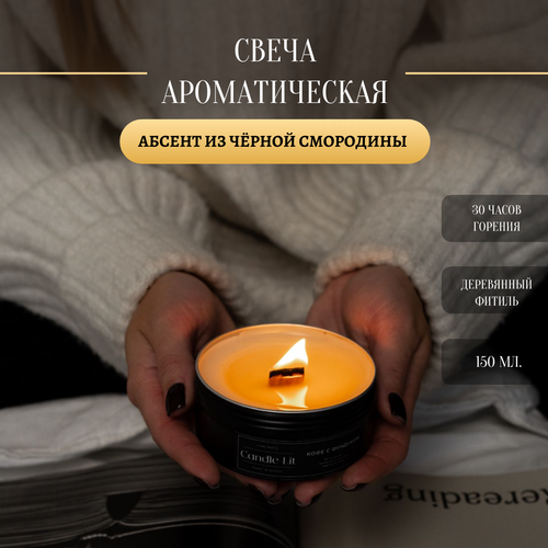Свеча ароматическая в металлической банке, "Абсент из чёрной смородины", деревянный фитиль, 150 мл, Candle_lit