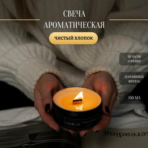 Свеча ароматическая в металлической банке, "Кофе с фундуком", деревянный фитиль, 150 мл, Candle_lit