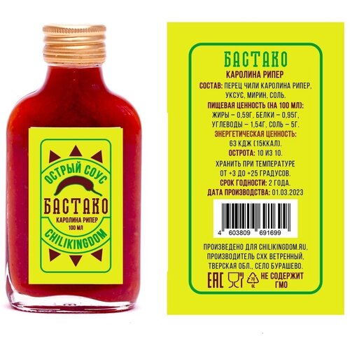 Соус чили крафтовый Бастако Каролина рипер 100 мл