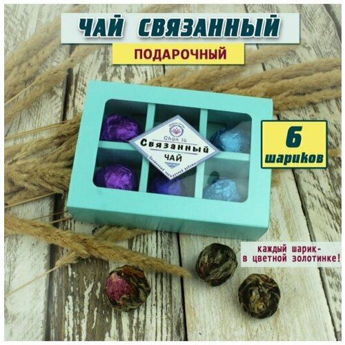 Подарочный набор/Связанный Цветочный Чай Ручной Работы, 6 шариков в зеленой коробке