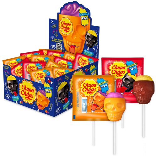 Карамель Chupa Chups Раскрась язык со вкусом апельсина и винограда, колы и лимона, 15 г, 45 шт. в уп.