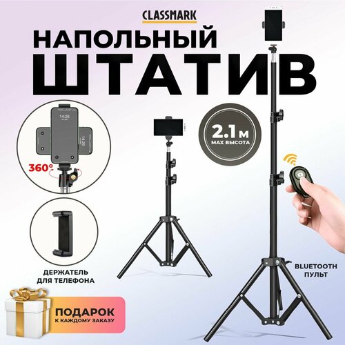 Штатив для телефона Classmark напольный, тренога для мобильного телефона, трипод, минимальная высота съемки 70 см, максимальная высота съемки 210 см, черный