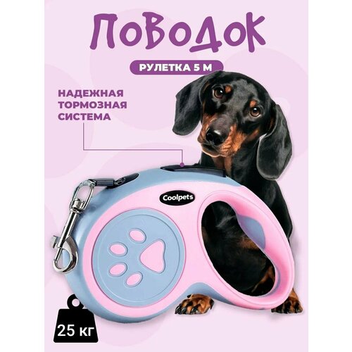 Поводок-рулетка "Classmark", для собак, регулируемый, до 25 кг, розовый