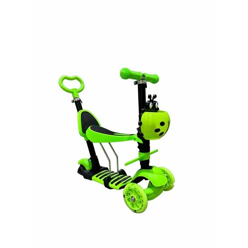 Самокат детский трехколесный, сиденье, ручка, корзина, зеленый