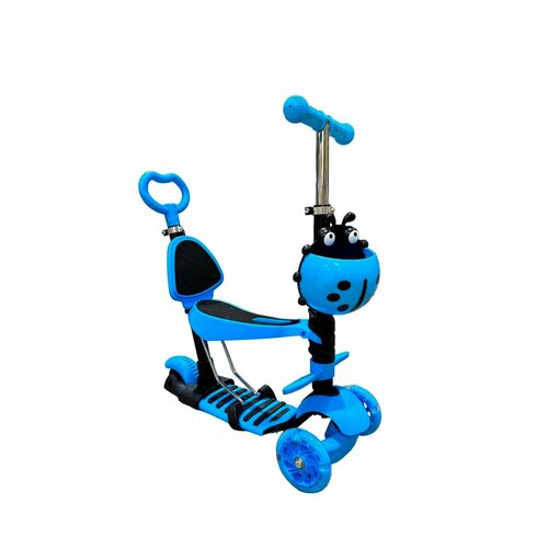 Самокат детский трехколесный, сиденье, ручка, корзина, голубой