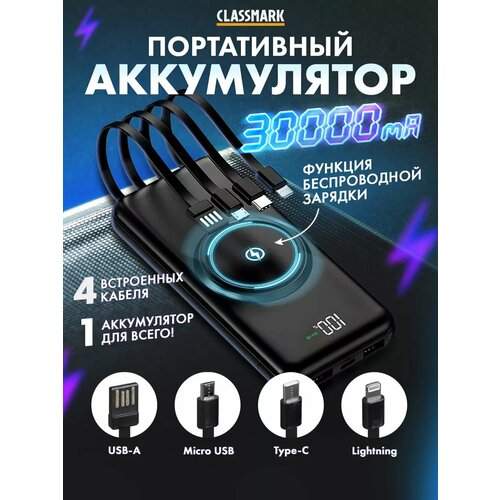 Повербанк 30000 внешний аккумулятор с беспроводной зарядкой