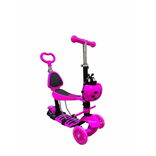 Самокат детский трехколесный, сиденье, ручка, корзина, розовый