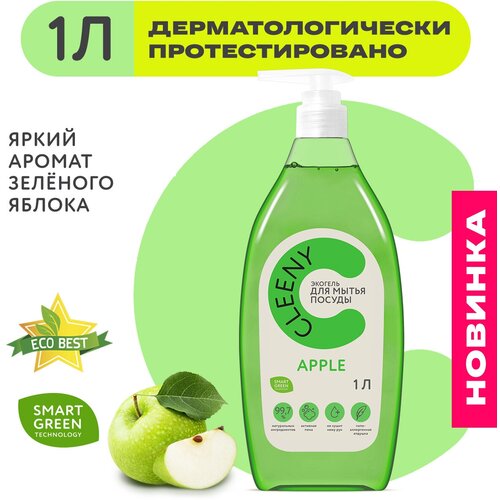 Средство концентрированное для мытья посуды и кухонного инвентаря ТМ Cleeny яблоко, 1л с дозатором