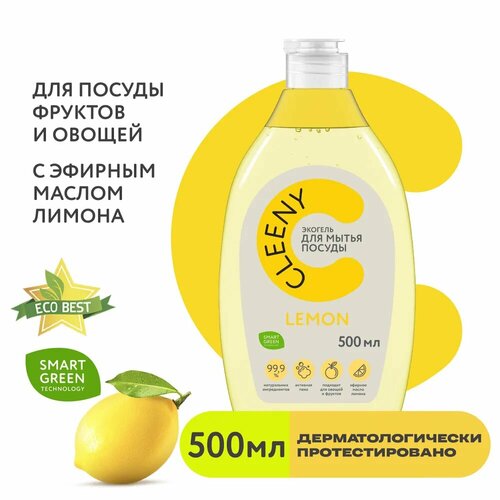 Средство для мытья посуды Cleeny 500 мл, с маслом лимона, гипоаллергенный концентрированный экогель, биоразлагаемый