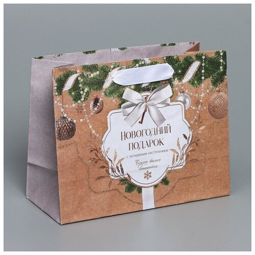 Пакет крафтовый горизонтальный «Новогодние игрушки», MS 23 × 18 × 10 см (1шт.)