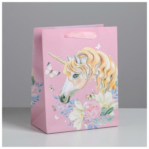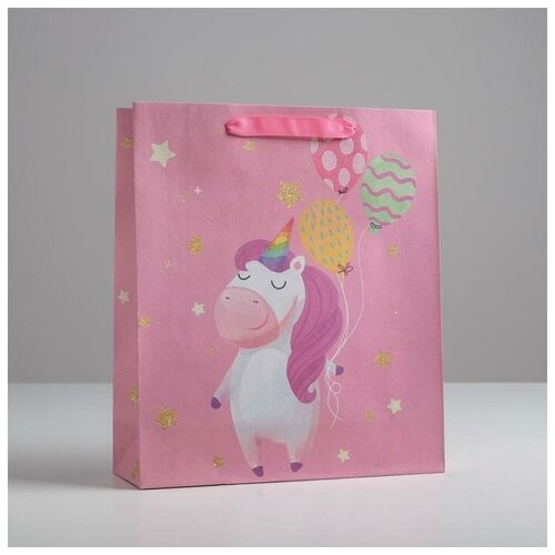Пакет крафтовый вертикальный «Единорожек», M 26 х 30 х 9 см (1шт.)