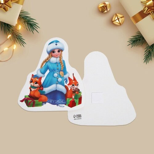 Открытка, декор на пухлом скотче "Снегурочка" подарки и зверята (10шт.)
