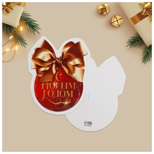 Открытка, декор на пухлом скотче "С Новым Годом!" красный шар (10шт.)