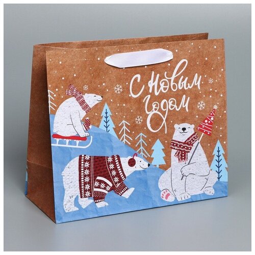 Пакет крафтовый горизонтальный «Белые медведи», ML 27 × 23 × 11,5 см (1шт.)
