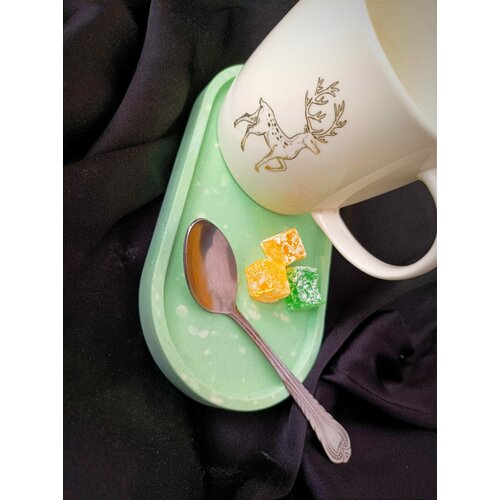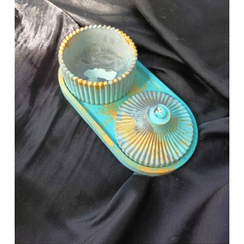 Гипсовый поднос (подставка) 18х9.5 см бирюзовый
