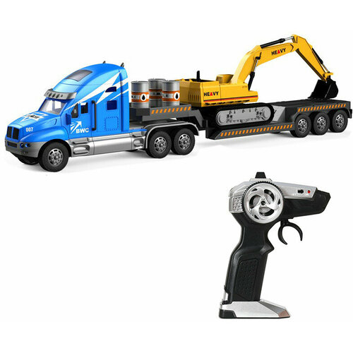 Радиоуправляемый грузовик тягач с экскаватором (2WD, акб, 1:14) - GM1938-BLUE