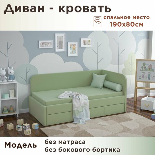 Диван-кровать детская "Бимбо" 190*80, цвет пыльно-зеленый, правый угол