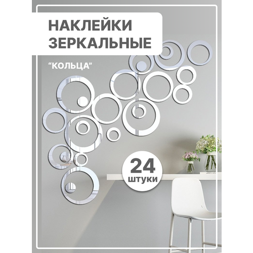 Интерьерные наклейки на стену для декора "Кольца" Зеркальная плитка самоклеящаяся