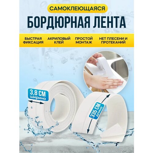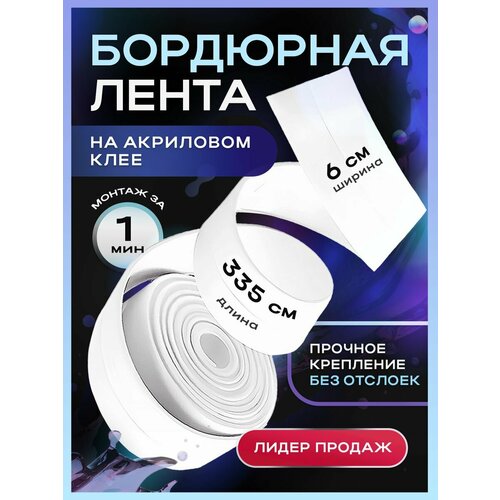 Бордюрная лента для ванны и кухни самоклеющаяся 60мм х 3,35м, плинтус для ванной и раковины, клейкая лента для стыков, белая