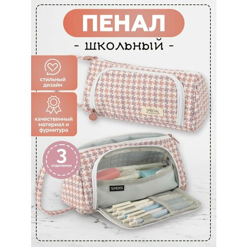 Пенал для девочек и мальчиков школьный большой с молнией, органайзер с отделениями в дорогу, в клетку