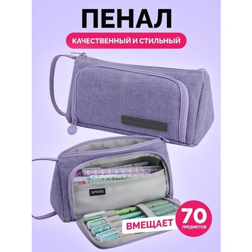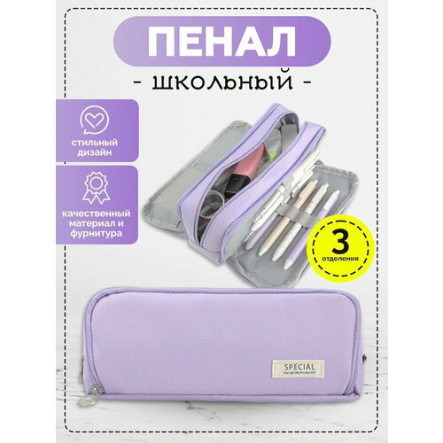 Пенал для девочек и мальчиков 3 отдела на молнии для школы, сиреневый