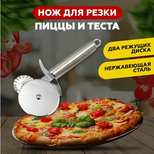 Нож для пиццы и теста, тесторезка, пиццерезка, волнистый нож, ролик для выпечки, длина лезвия 6,4см