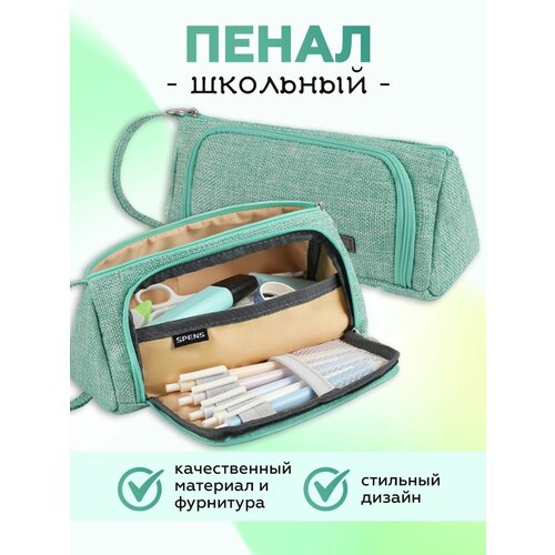 Пенал школьный для девочек мальчиков подростковый органайзер, зелёный