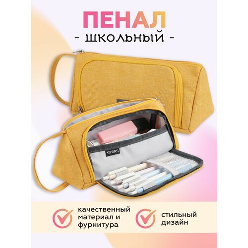 Пенал школьный для девочек мальчиков подростковый органайзер, желтый