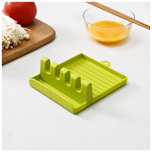 Держатель кухонный для кухонной утвари, для ложки, половника, вилки, силиконовая термостойкая подставка для кухонных принадлежностей, зеленая
